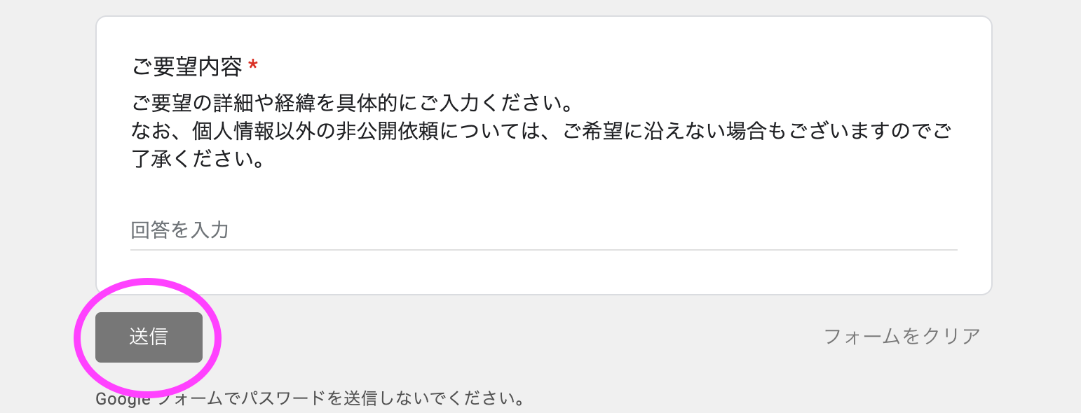 フォームの内容にそって、以下の内容をご入力ください。