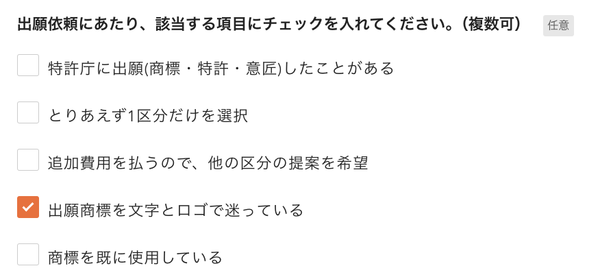 文字で出願するか、それともロゴで出願するか、専門家に相談してから決めたい場合は、お申し込みの画面の「出願商標を文字とロゴで迷っている」にチェックを入れてお申し込みください。お申し込み後(=出願費用をお支払い後)、お客様の担当弁理士より最適な出願方法をご案内いたします。